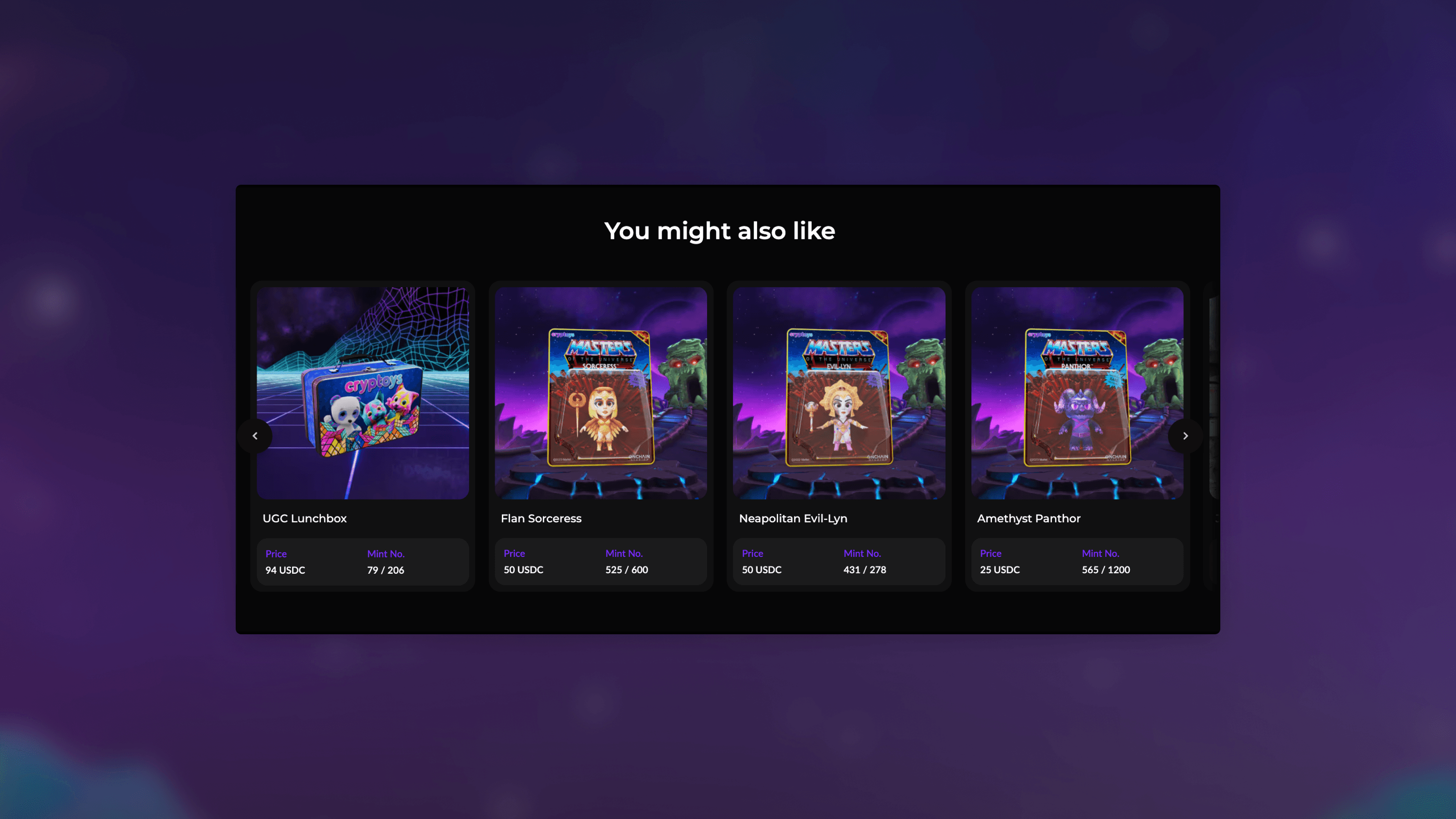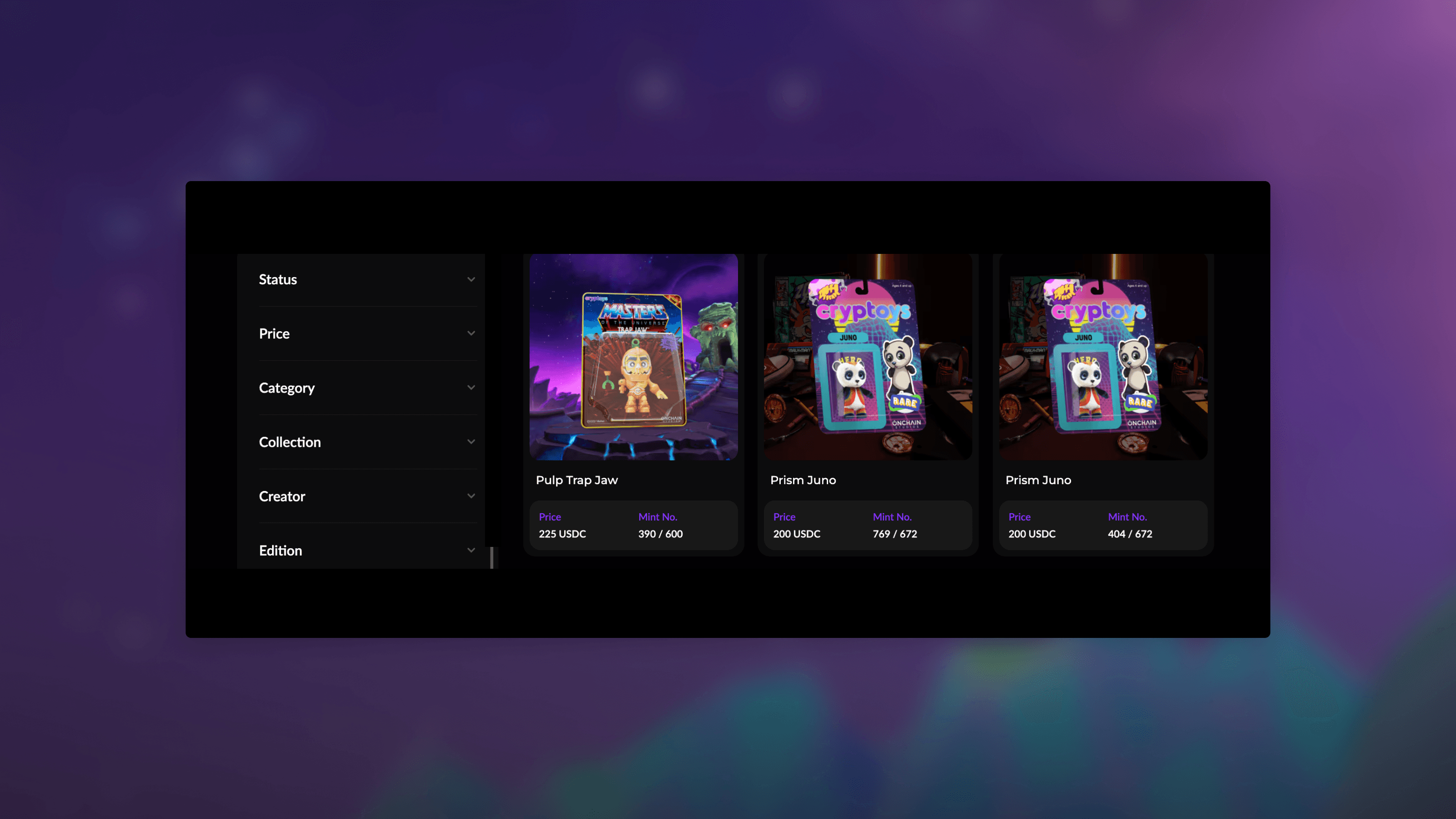 This custom marketplace only houses Cryptoys collectibles, maintaining the integrity of both their own and their partners’ unique IP. Buying and selling all happens on Cryptoys’ own platforms, increasing customer loyalty and creating plenty of community building opportunities.