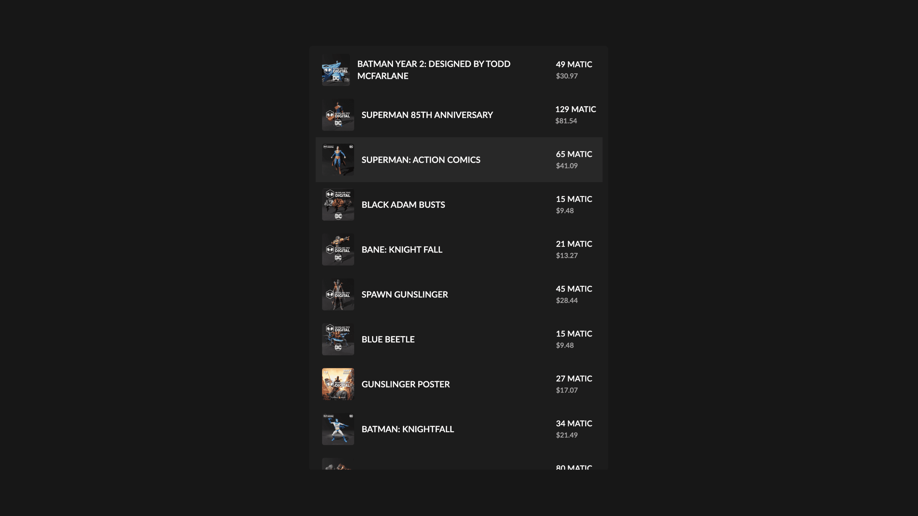 McFarlane Digital keeps its audience constantly engaged via regular surprise drops, distributed through the Rarible-powered marketplace. That way, fans can easily keep track of all the released NFTs, and trade items with each other to build their collections just like they did at toy fairs back in the day.