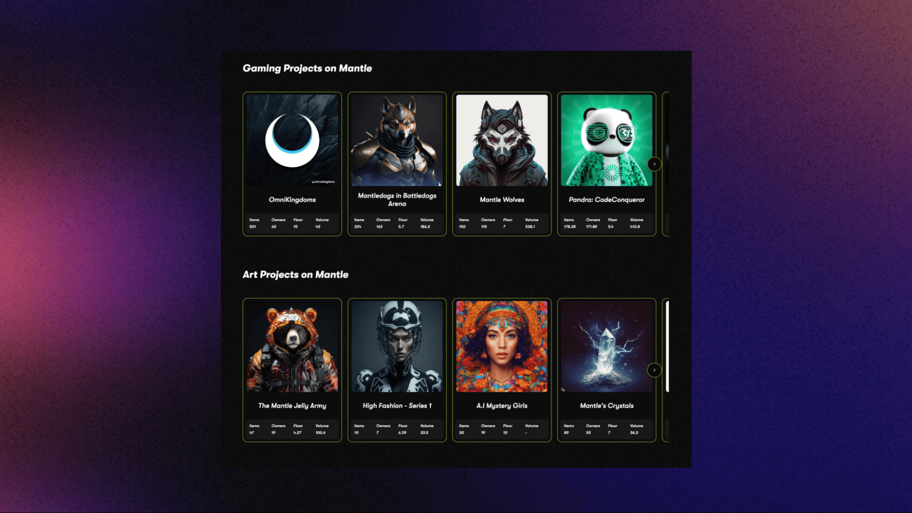 From gaming and art to PFPs, a diverse range of web3 projects are growing on Mintle. Low gas fees create more opportunities for both developers and traders, while the user-friendly UI is designed to provide a straightforward experience for collectors.