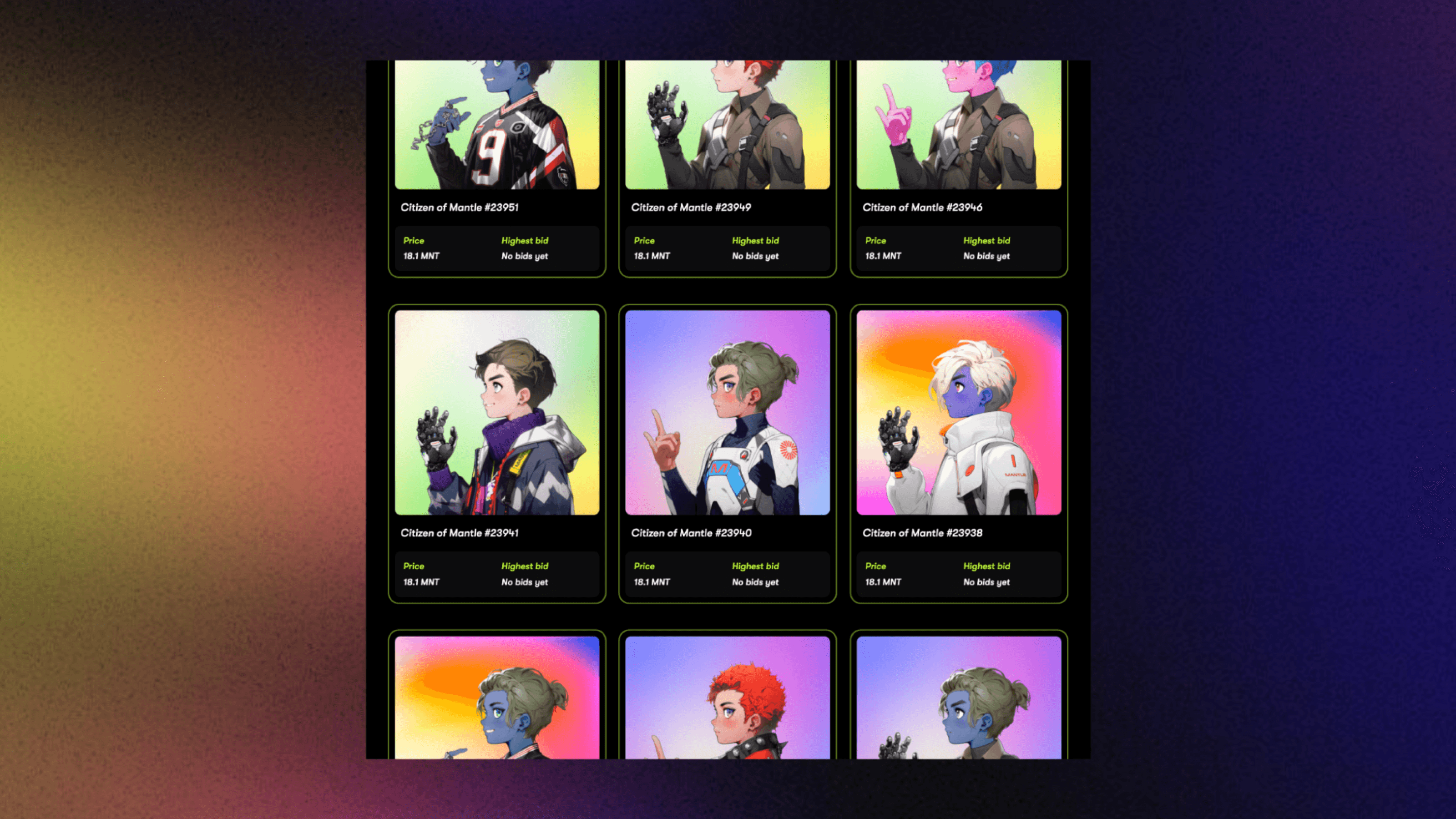 The mint of Citizens of Mantle coincided with the Mintle marketplace's launch—combined, these events marked the kickoff of NFT ecosystem within the burgeoning L2 chain.