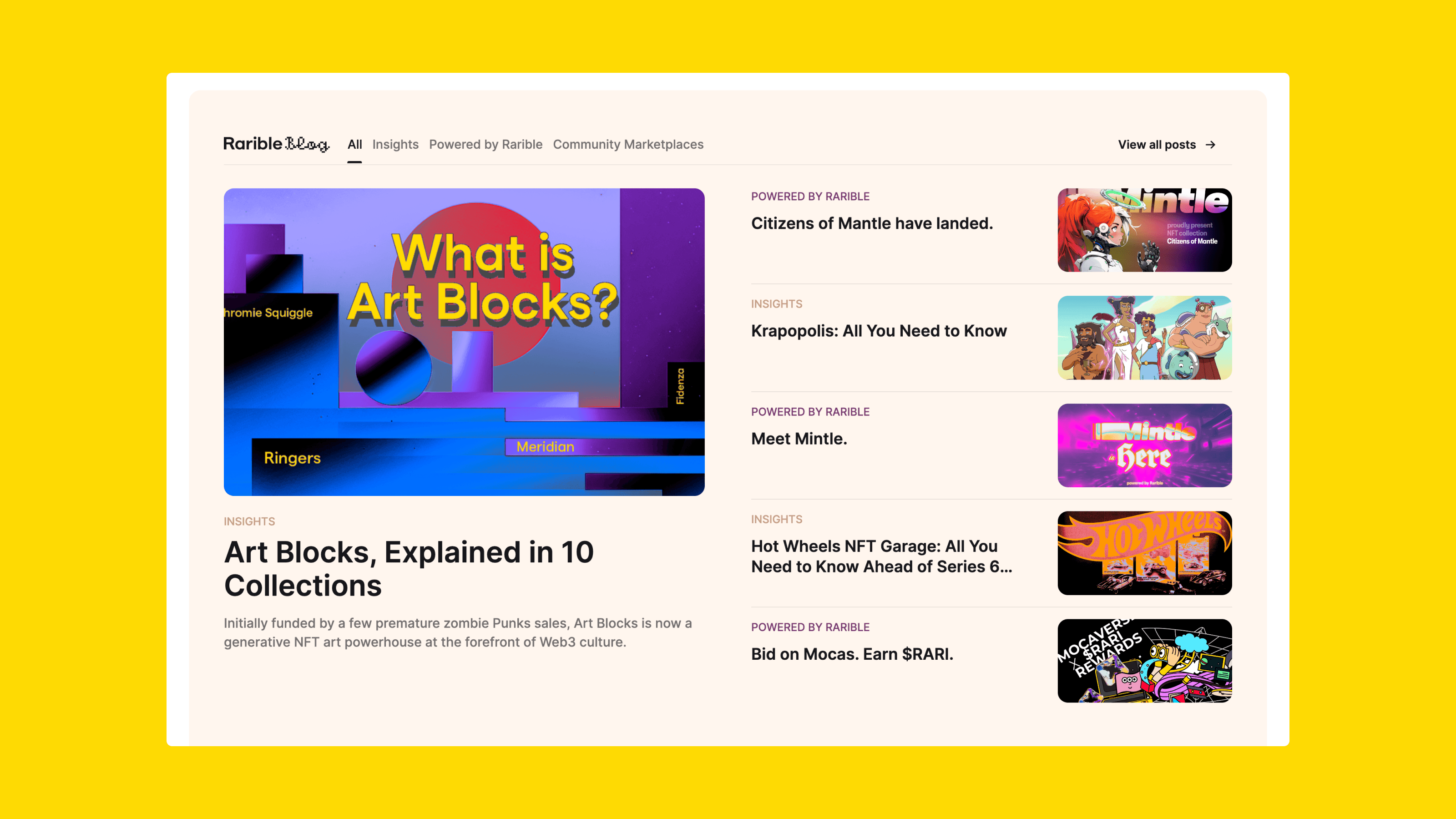 Having witnessed several market cycles over the past few years —the initial NFT art boom of 2020, the PFP mania of 2021, the continuous bear market that started in 2022—Rarible.com has grown into a massive, yet flexible, user-friendly and resilient platform that has kept building no matter what, currently preparing for the next retail-driven era of NFTs. Part of this strategy involves focusing on L2 chains, like Polygon—one of the main drivers of mainstream adoption—and the web3-gaming ready Immutable.